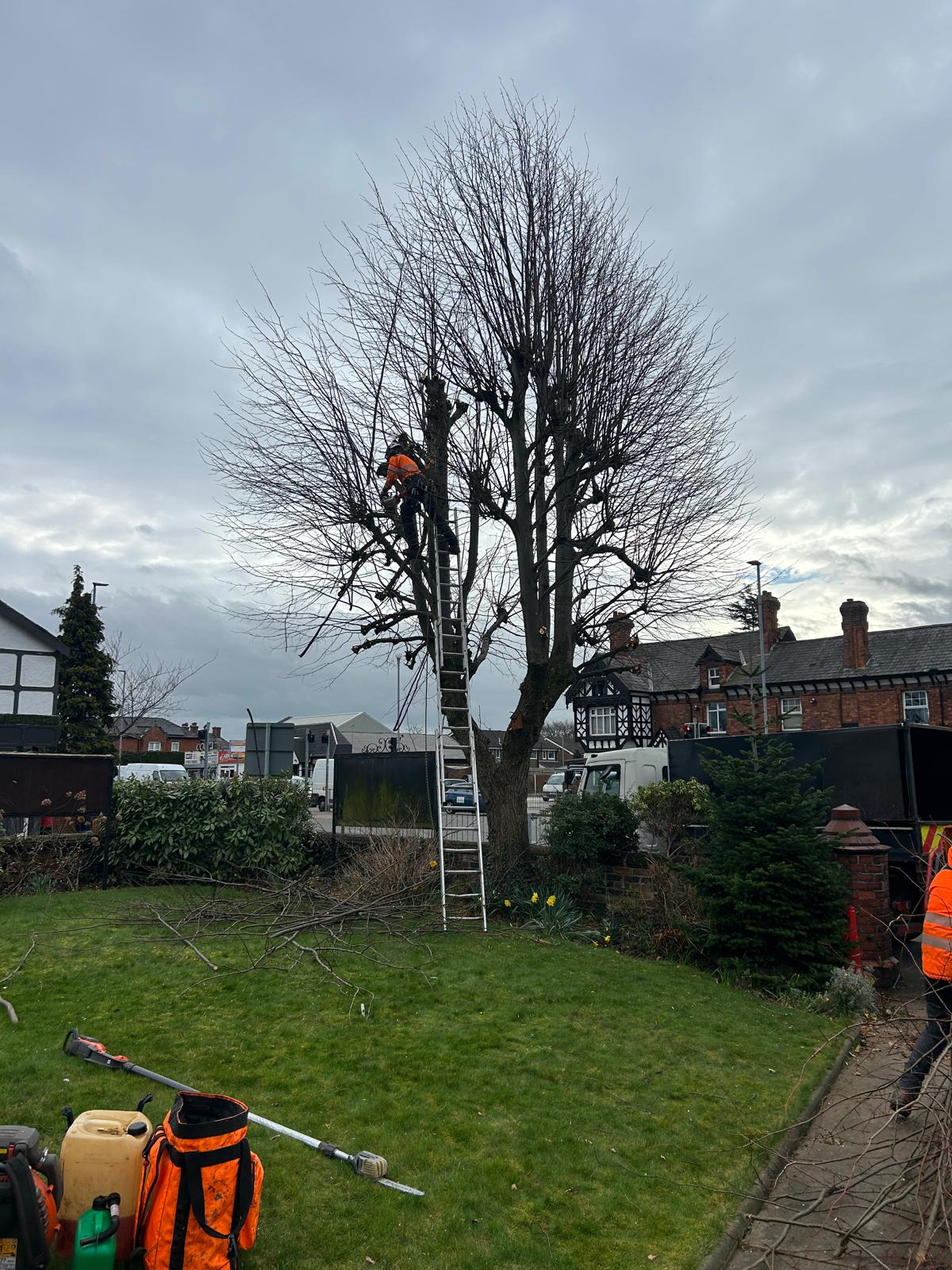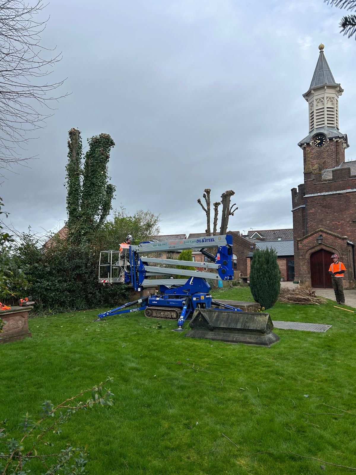 Re-pollarding several trees at St Mary’s Church in Great Sankey, Warrington. Both teams, along with all the necessary equipment, worked together to complete the job safely and efficiently—making light work of it in a short time while keeping everything clean and well-organised throughout.